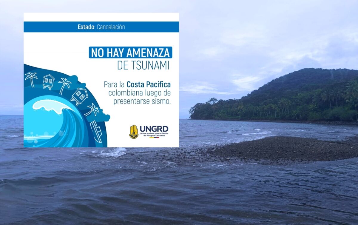 La UNGRD cancela el estado de advertencia por tsunami en el Pacífico colombiano, luego de confirmar que no se esperan nuevas olas ni alteraciones en el oleaje. La Dirección General Marítima (Dimar) revisó sus modelos técnicos y concluyó que no hay riesgos para las costas de Nariño, Cauca, Valle del Cauca y Chocó.