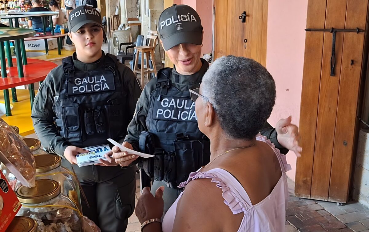 Desde el Centro Histórico, donde se adelantan jornadas de socialización con comerciantes y turistas, el oficial fue enfático: “Estamos haciendo la campaña que invita a toda la comunidad a denunciar, a dar a conocer nuestro lema ‘yo no pago, yo denuncio’ y nuestra línea de atención”, afirmó.